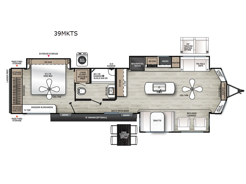 Step inside and experience the expansive living space, enhanced by three strategically placed slide-outs that maximize interior room. The thoughtfully designed layout comfortably sleeps three, making it perfect for couples or small families seeking a cozy retreat. The elegant interior features high-quality finishes and modern amenities, ensuring you have everything you need for a comfortable stay. From the fully equipped kitchen to the inviting living area, every detail has been crafted to provide a seamless blend of functionality and style.