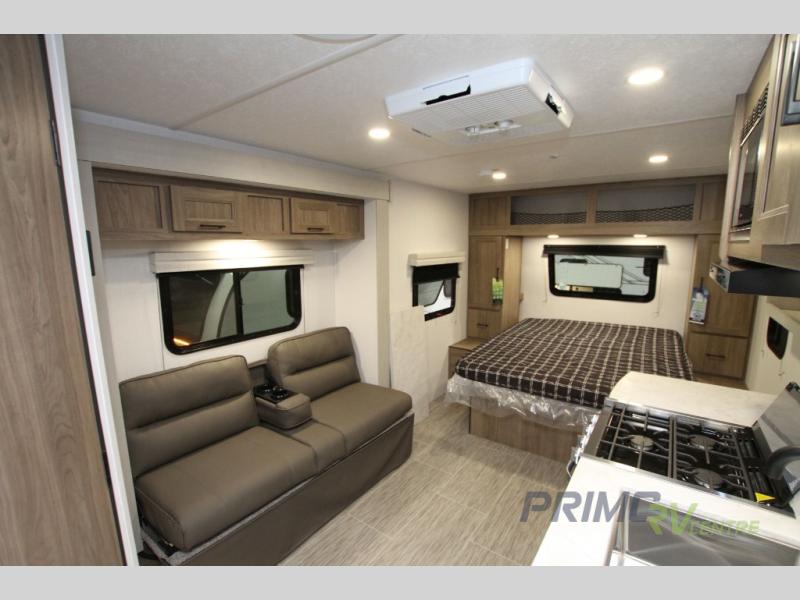 Step inside, and you'll find a cleverly designed interior that maximizes space and comfort. The single slide-out expands the living area, giving you extra room to relax and unwind after a day of exploring. Whether you're traveling solo, as a couple, or with a small family, this RV comfortably sleeps three, making it ideal for cozy getaways. The modern amenities and thoughtful layout ensure you have everything you need, from a functional kitchenette to a comfy sleeping area.
