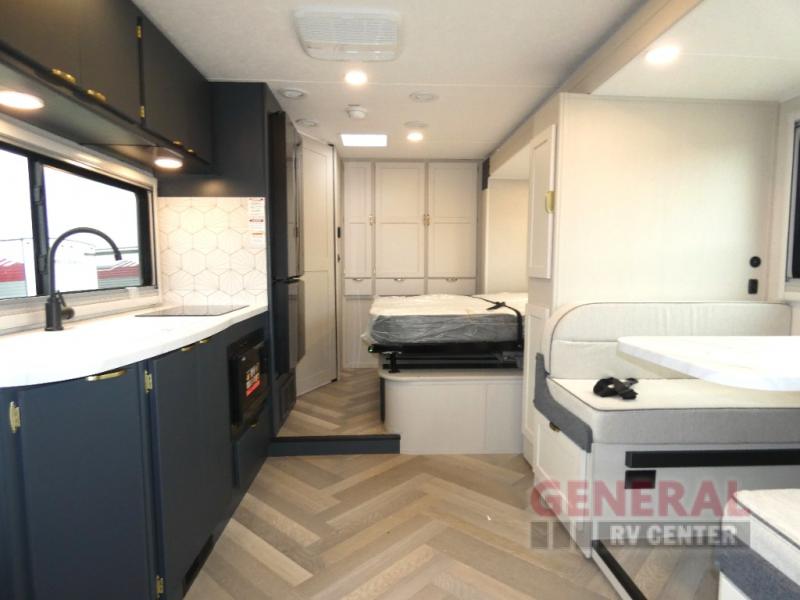 Step inside and be greeted by a thoughtfully designed interior that can comfortably sleep up to four people, making it ideal for family getaways or a couple's retreat. The single slide-out expands your living space, providing ample room for relaxation and entertainment. The modern kitchen is equipped with top-of-the-line appliances, ensuring you can prepare gourmet meals wherever you roam. The cozy sleeping quarters and well-appointed bathroom offer all the comforts of home, allowing you to unwind after a day of exploration.