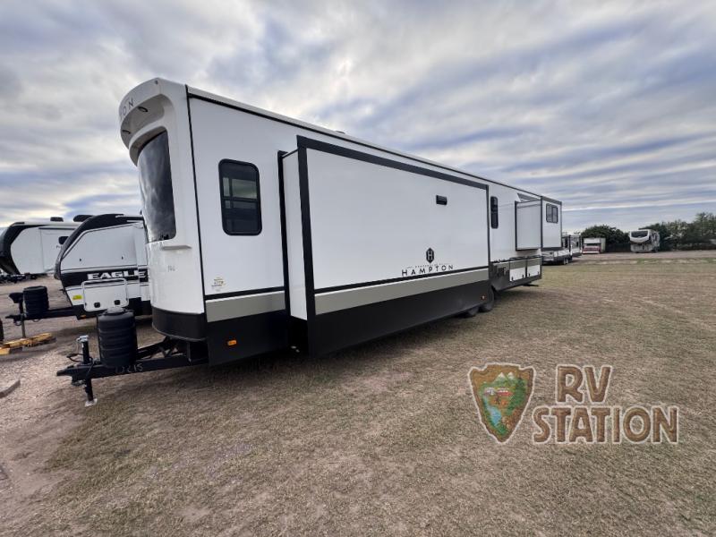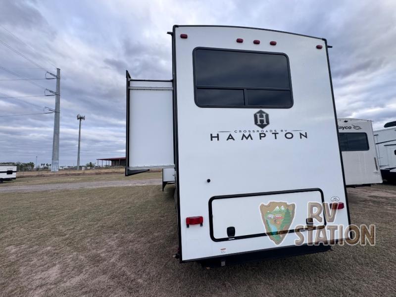 Discover the ultimate blend of comfort and style with the 2025 CrossRoads RV Hampton 395BAM Park Model. This luxurious RV is designed to be your home away from home, offering a spacious and inviting environment for your travels. With three expansive slide-outs, this model provides ample living space, ensuring you and your family can relax and enjoy every moment on the road. Measuring an impressive 35 feet in length, the Hampton 395BAM is perfect for those who appreciate a roomy interior without compromising on style.
