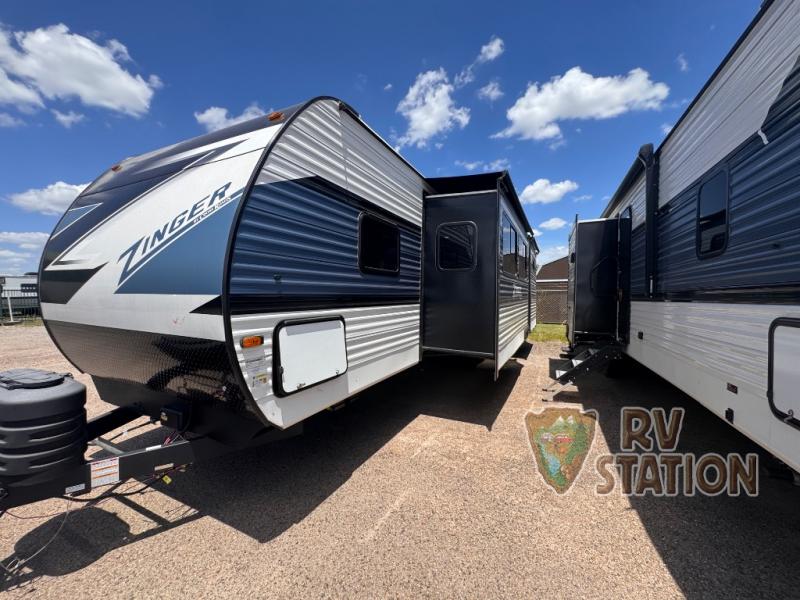 Discover the ultimate in family-friendly travel with the 2025 CrossRoads RV Zinger 328SB Travel Trailer. This spacious and versatile RV is designed to accommodate your entire crew, comfortably sleeping up to 11 people. With two convenient slide-outs, the Zinger 328SB offers ample living space, making it perfect for extended road trips or weekend getaways. Measuring 30 feet in length, this travel trailer provides a perfect balance of maneuverability and roominess, ensuring you can explore a wide range of destinations without compromising on comfort.