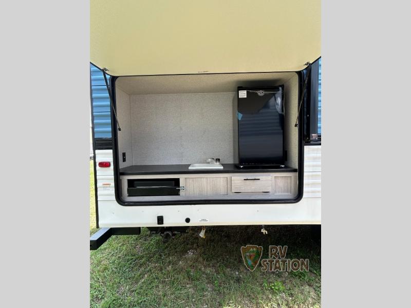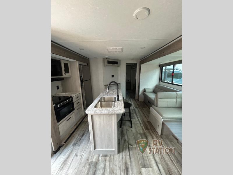 Inside, you'll find ample sleeping arrangements for up to nine people, making it ideal for large families or groups of friends. The cleverly designed floor plan includes a private master bedroom, a cozy bunkhouse for the kids, and additional sleeping options in the living area. The well-appointed kitchen, complete with modern appliances, allows you to prepare delicious meals on the go, while the spacious living area provides a perfect spot for relaxation and entertainment. The Zinger 331BH is not just a travel trailer; it's your home away from home.