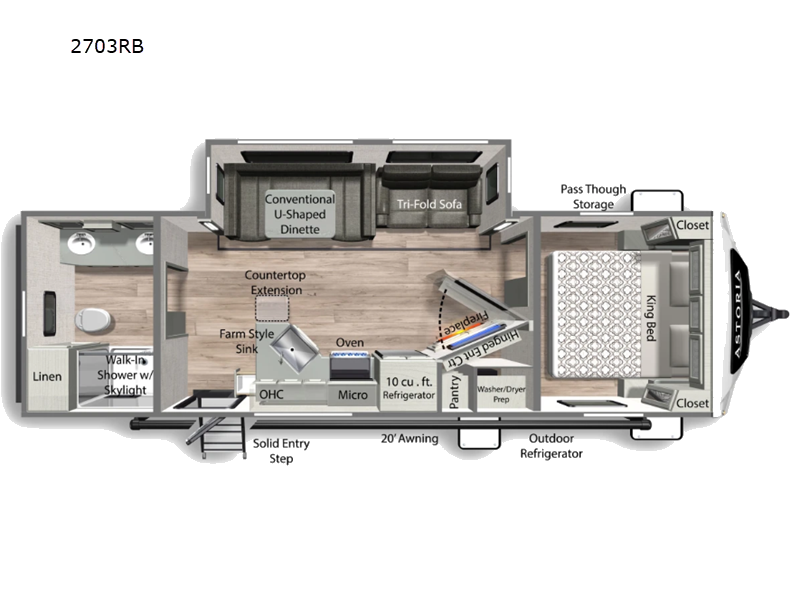 This RV is perfect for both seasoned travelers and those new to the RV lifestyle. It’s easy to maneuver, making it ideal for exploring both bustling cities and serene countryside. Whether you're planning a weekend getaway or a cross-country adventure, the Dutchmen Astoria 2703RB is ready to take you there in style and comfort. Don’t miss out on the opportunity to own this fantastic travel trailer – your next adventure awaits!