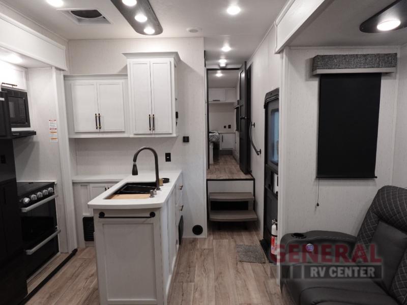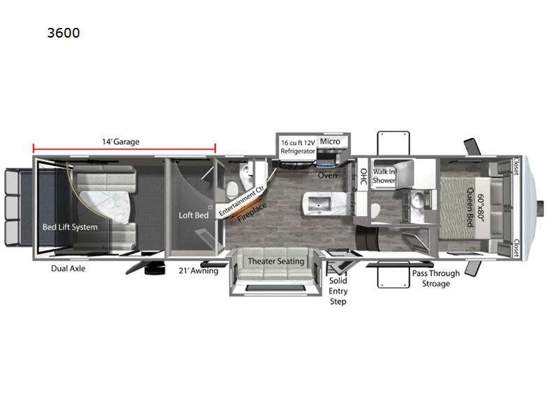 The Voltage V-Series 3600 features two expansive slide-outs, maximizing the interior living space to accommodate up to seven people comfortably. Whether you're embarking on a weekend getaway or an extended road trip, this RV ensures that everyone has their own space to unwind. The thoughtfully designed floor plan includes a fully equipped kitchen, a cozy living area, and a luxurious master suite, all crafted with high-quality materials and modern finishes to create a home-like atmosphere on the road.