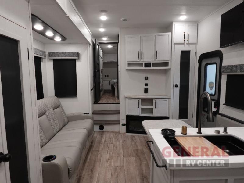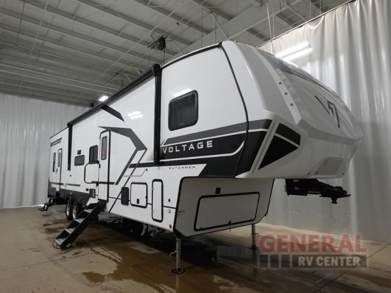 Introducing the 2025 Dutchmen RV Voltage V-Series 3800 Fifth Wheel, a premier choice for those seeking luxury and functionality in their outdoor adventures. This meticulously crafted RV offers an impressive blend of comfort and convenience, designed to elevate your travel experience. With a length of 35 feet, this fifth wheel provides ample space for relaxation and entertainment, making it an ideal choice for families or groups of up to seven people.