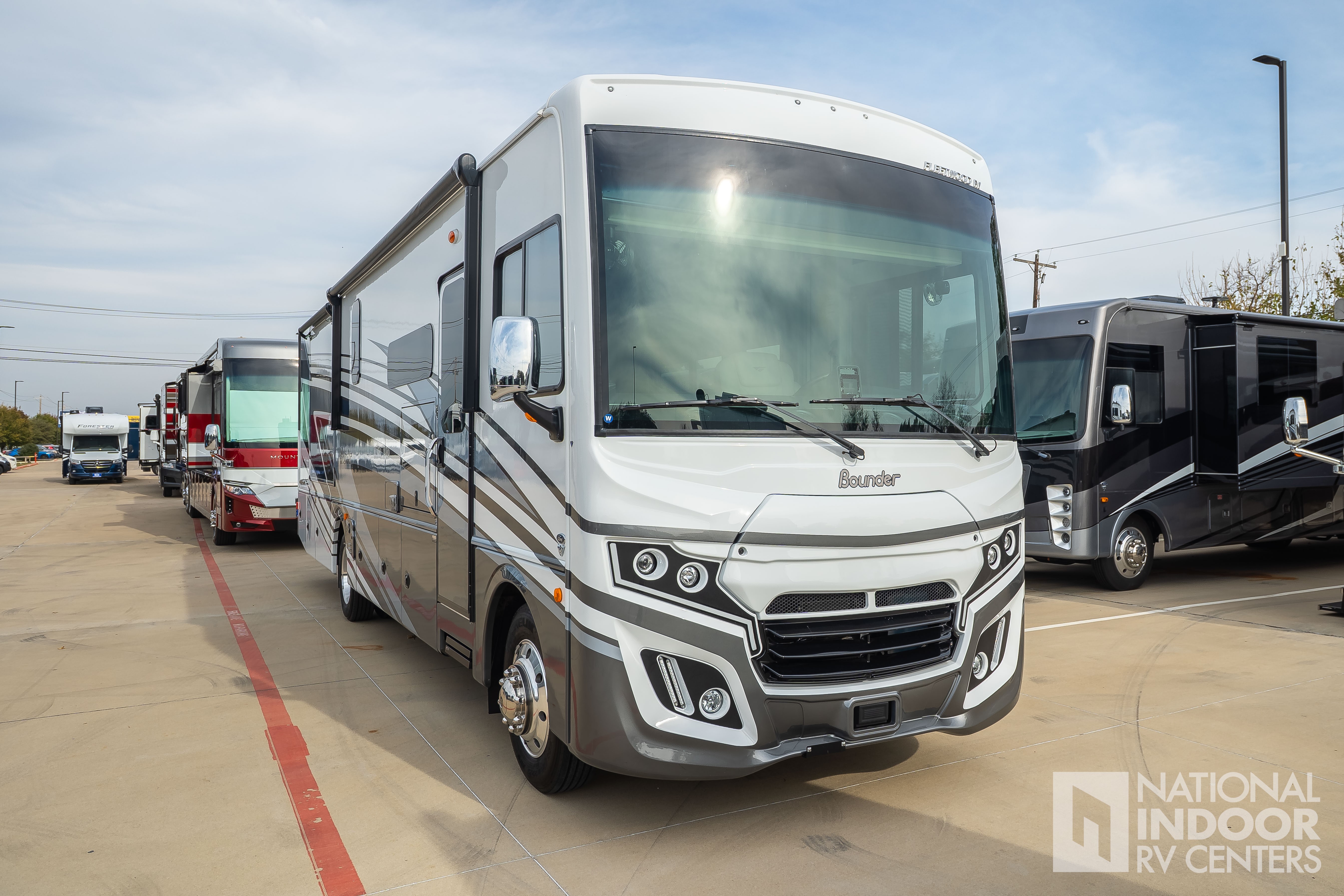 This exquisite motorhome features two expansive slide-outs, significantly enhancing the living space and providing a roomy, comfortable environment for relaxation and entertainment. The Bounder 35K measures an impressive 31 feet in length, offering ample space for all your travel needs while maintaining ease of maneuverability. Inside, you'll find a thoughtfully designed layout that includes a fully equipped kitchen, a cozy living area, and a luxurious bathroom, all crafted with high-quality materials and finishes.