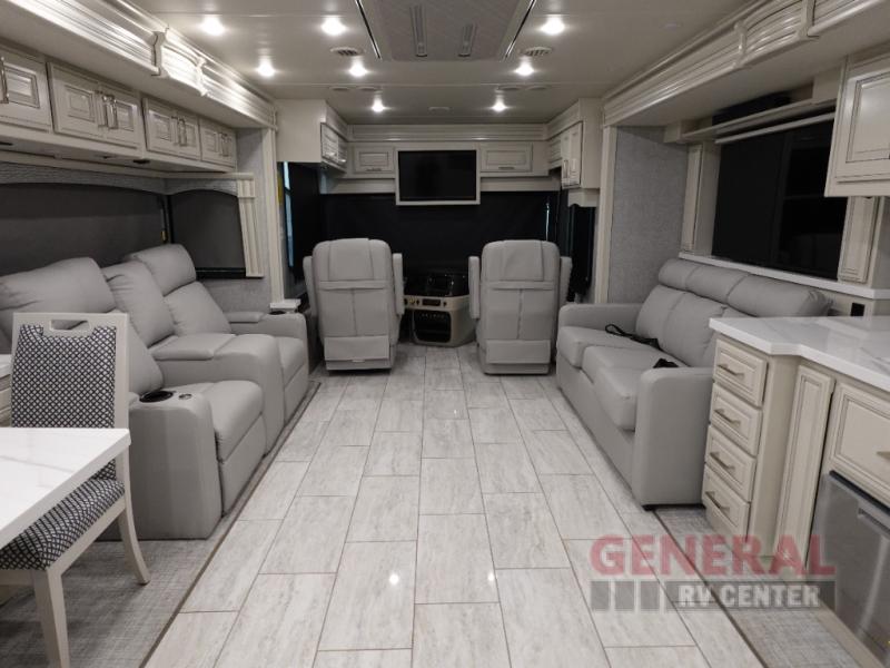 Inside, the Palisade 45CS comfortably sleeps four, making it perfect for family getaways or trips with friends. The interior is thoughtfully designed with modern amenities and plush furnishings, ensuring that you feel right at home no matter where the road takes you. Imagine waking up to stunning views from your panoramic windows, cooking breakfast in a fully-equipped kitchen, and ending the day with a movie night in your own living room on wheels.