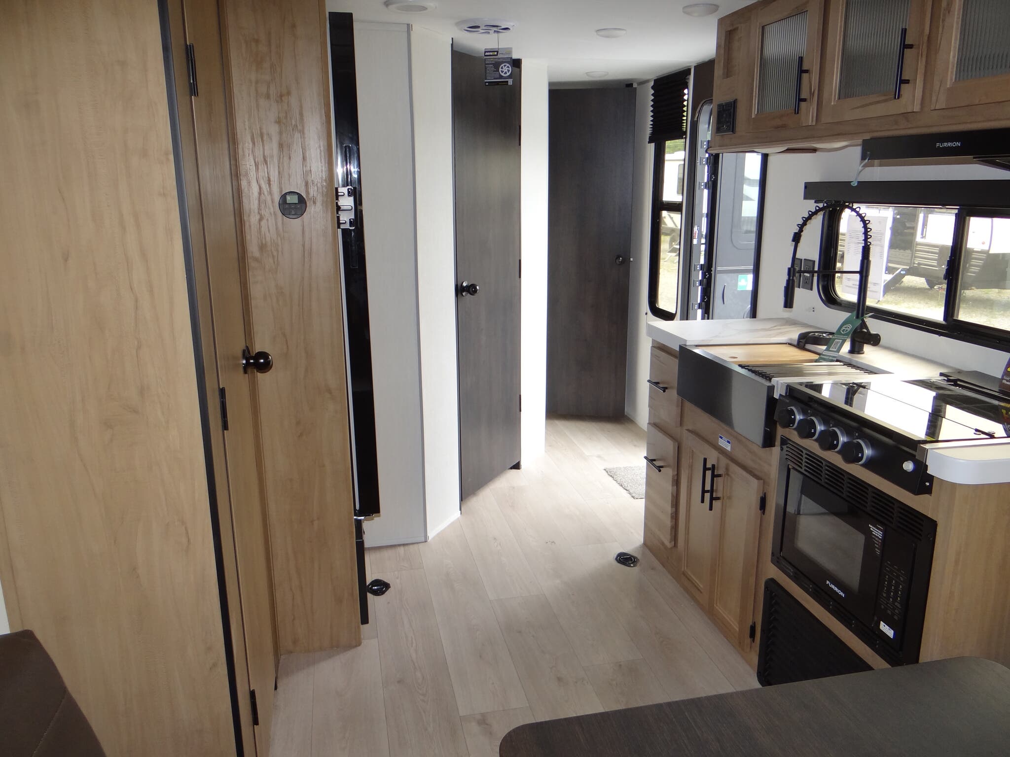 Step inside to find a thoughtfully designed interior that comfortably sleeps up to four people, making it ideal for family getaways or trips with friends. The living area is equipped with modern amenities and stylish finishes, ensuring a cozy and inviting atmosphere after a day of exploration. The kitchen is fully equipped with top-of-the-line appliances, allowing you to prepare delicious meals on the go. With a length of 24 feet, this RV provides ample space for relaxation and entertainment, while still being compact enough for easy maneuverability on the road.