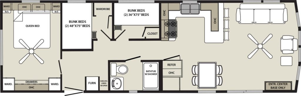 Step inside and be greeted by a beautifully appointed interior featuring three cozy bedrooms, each designed to ensure a restful night's sleep. The master suite boasts a plush queen-sized bed, while the additional bedrooms offer versatile sleeping arrangements perfect for family or guests. The living area is a true highlight, with its inviting seating and state-of-the-art entertainment system, making it the perfect spot to unwind after a day of adventure. The fully-equipped kitchen, complete with modern appliances and generous counter space, allows you to whip up your favorite meals with ease.