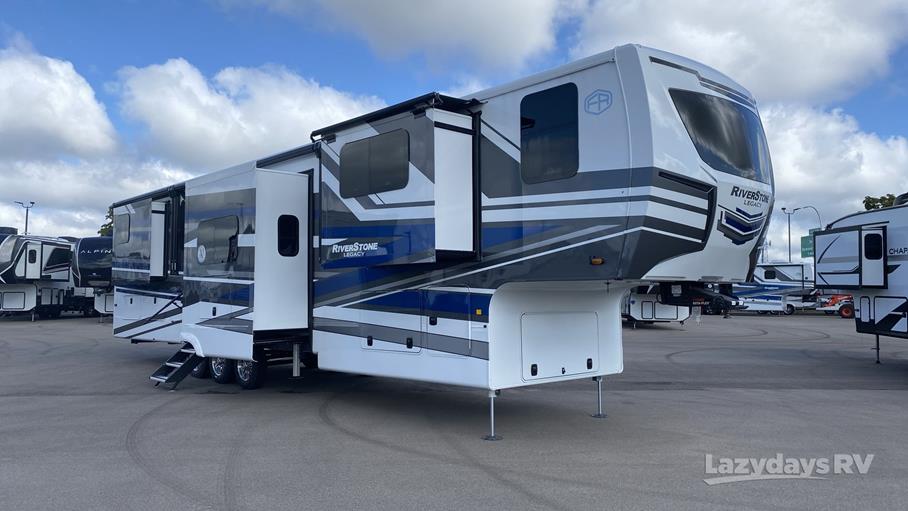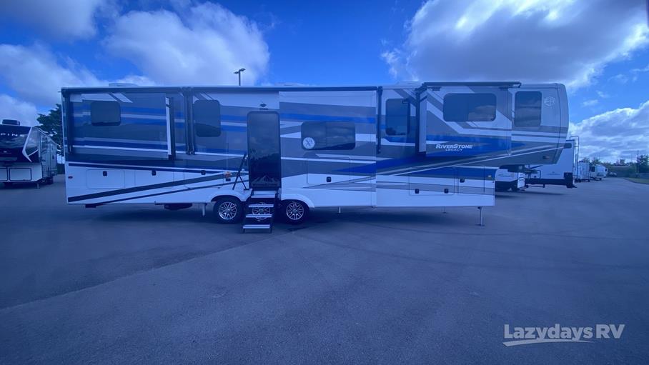 The RiverStone 425FO features six slide-outs, maximizing interior space to create a roomy and inviting atmosphere. This RV comfortably sleeps up to six people, making it perfect for family adventures or trips with friends. The well-appointed interior includes a master bedroom, a cozy living area, and a fully equipped kitchen, providing all the comforts of home while on the road. The thoughtful layout ensures privacy and relaxation, with plenty of storage options to keep your belongings organized and accessible.