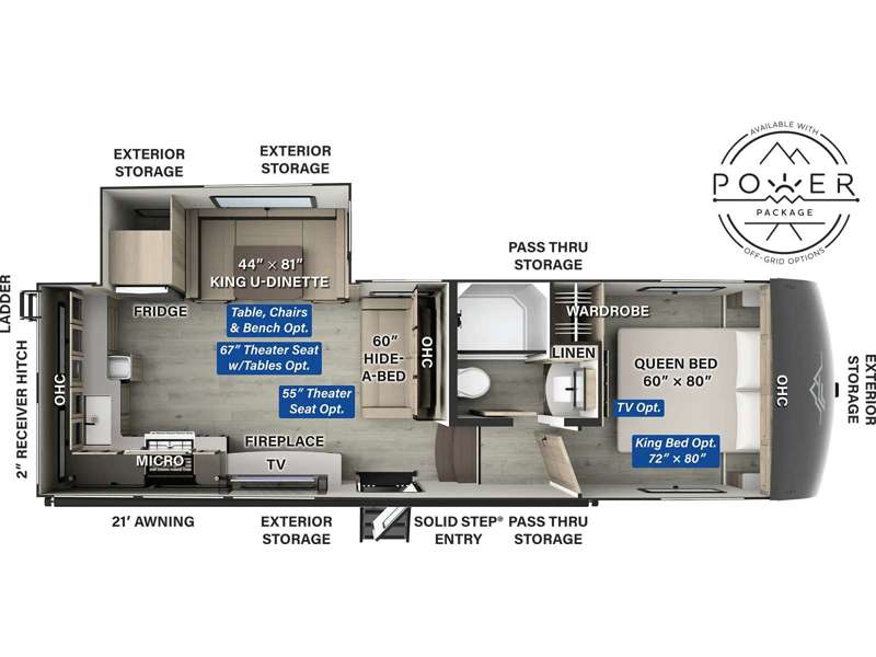 The Flagstaff Classic 301RK features two spacious slide-outs, significantly enhancing the living area and providing a roomy, open feel. Inside, you'll find accommodations to comfortably sleep up to six people, making it perfect for family trips or outings with friends. The thoughtfully designed interior includes a well-appointed kitchen, complete with modern appliances and ample storage, allowing you to prepare meals with ease. The living area is equally impressive, offering plush seating and a state-of-the-art entertainment system, ensuring everyone stays entertained during those long road trips.