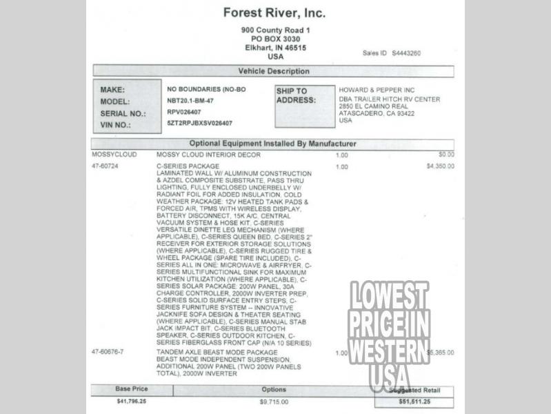 Weighing in at just 2,494 kilograms, the No Boundaries NB20.1 is lightweight yet robust, allowing for easy towing with a variety of vehicles. Its durable construction and off-road capabilities mean you can explore even the most remote destinations with confidence. Whether you're planning a weekend escape or an extended road trip, this travel trailer offers the perfect blend of freedom, comfort, and adventure. Don't miss your chance to own this exceptional RV and start creating unforgettable memories on the road today!