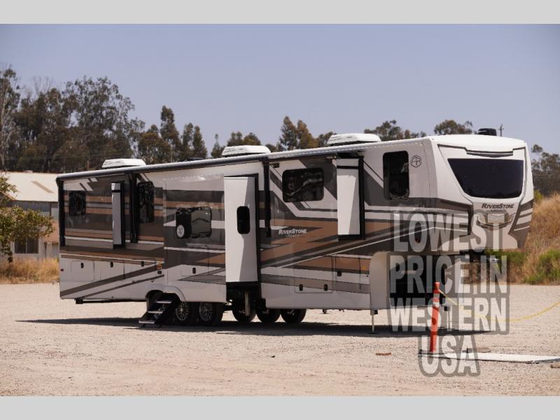 The RiverStone 425FO features six slide-outs, creating an expansive living area that can comfortably sleep up to six people. Whether you're traveling with family or hosting guests, everyone will appreciate the generous space and thoughtful design. The interior is beautifully appointed with high-quality finishes and modern amenities, ensuring a cozy and inviting atmosphere. From the fully-equipped kitchen to the elegant living area, every detail has been carefully considered to enhance your travel experience.