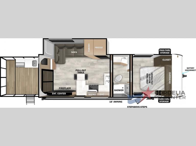 Step inside to discover a thoughtfully designed interior that maximizes space and functionality. The Salem 22VERANDA boasts a spacious living area, complete with plush seating and state-of-the-art amenities. The kitchen is equipped with top-of-the-line appliances, including a refrigerator, stove, and microwave, all designed to make meal preparation a breeze. The dining area provides a comfortable space for family meals or entertaining guests. The sleeping quarters offer a tranquil retreat, featuring a cozy bed and ample storage space for all your belongings. The bathroom is elegantly appointed with modern fixtures, ensuring a refreshing experience after a day of exploration.
