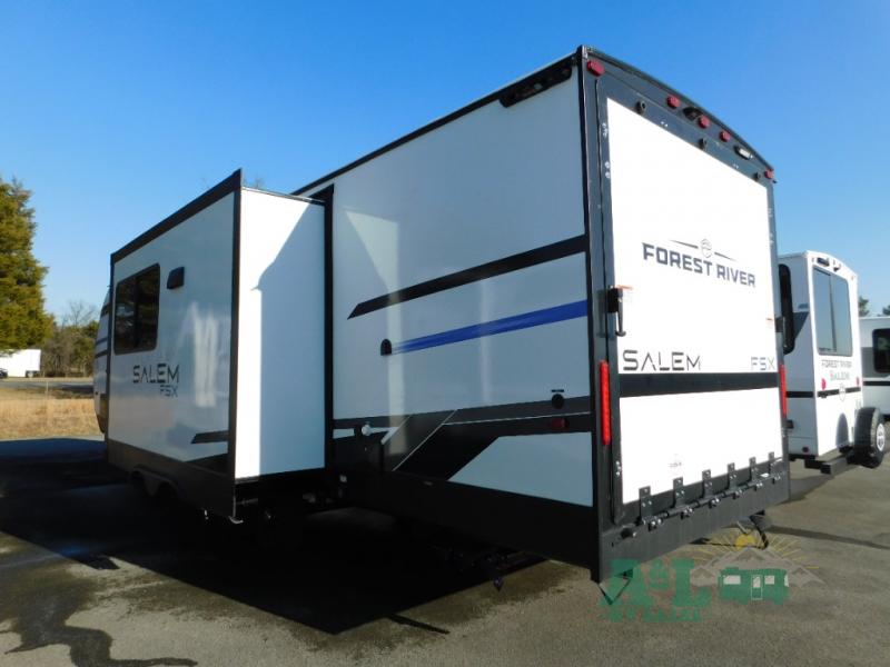 Introducing the 2025 Forest River RV Salem FSX 299VCX Toy Hauler, a remarkable blend of luxury, functionality, and adventure-ready design. This state-of-the-art recreational vehicle is meticulously crafted to cater to the needs of both seasoned travelers and weekend explorers. With an impressive length of 29 feet, this RV offers ample space for comfort while maintaining a manageable size for easy maneuverability on the road.