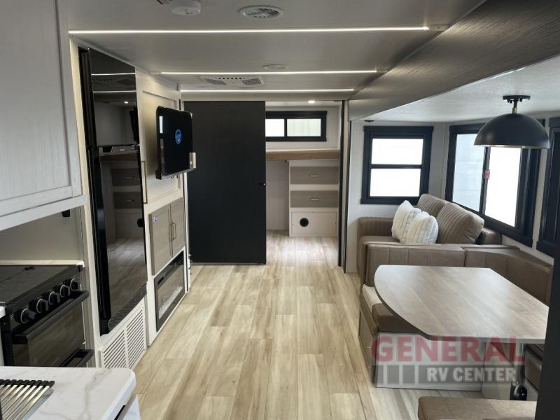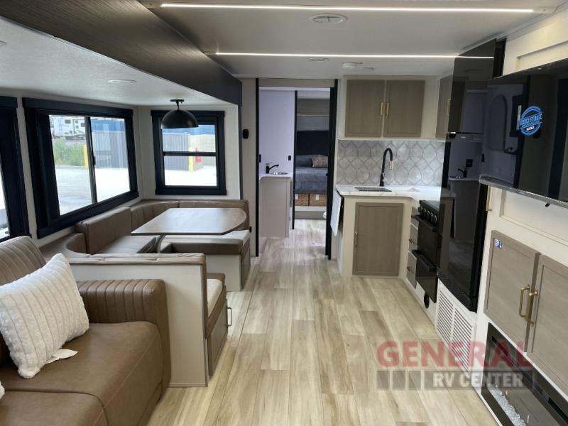 Step inside, and you'll find a smart layout that can sleep up to 10 people, making it ideal for family trips or a getaway with friends. The single slide-out expands the living area, providing extra room to relax and enjoy your time on the road. Whether you're lounging after a day of exploring or gathering for a meal, this RV has got you covered. The interior is thoughtfully designed with modern amenities to ensure comfort and convenience, so you can focus on making memories.