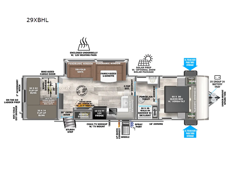 Weighing in at just 3,257 kilograms, this travel trailer is lightweight yet sturdy, ensuring a smooth ride wherever your journey takes you. Its sleek design and efficient use of space make it a breeze to tow, while still offering all the features you need for a comfortable stay. Whether you're hitting the open road for a weekend getaway or embarking on a cross-country adventure, the 2025 Forest River RV Salem Hemisphere Hyper-Lyte 29XBHL is ready to be your trusty travel partner. Get ready to explore the great outdoors in style and comfort!