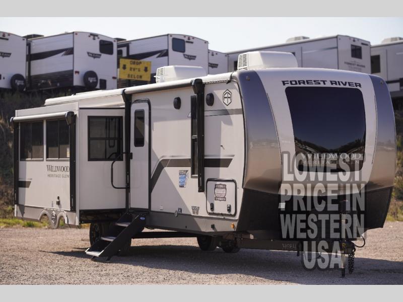 The Wildwood Heritage Glen 271RL features two expansive slide-outs, significantly enhancing the living space and providing a roomy atmosphere that can comfortably accommodate up to five people. The interior is elegantly designed with high-quality finishes and modern amenities, ensuring a home-like feel while on the road. The well-appointed kitchen, complete with state-of-the-art appliances, allows for convenient meal preparation, while the cozy sleeping quarters promise restful nights after a day of exploration.