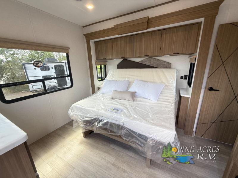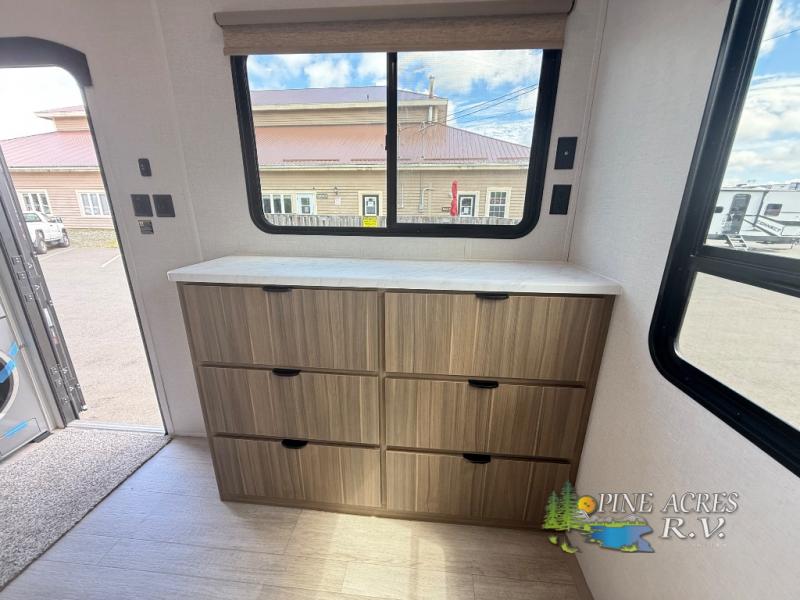 This RV is all about space and convenience, featuring two slide-outs that really open up the living area. Whether you're lounging with a book or entertaining friends, you'll appreciate the roomy feel. It comfortably sleeps four, making it ideal for family trips or a cozy couple's retreat. The interior is thoughtfully designed with modern amenities and stylish finishes, ensuring you feel right at home no matter where you are.