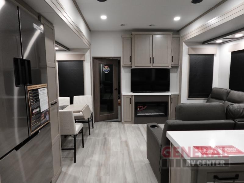 Discover the ultimate blend of luxury and adventure with the 2025 Grand Design Momentum M-Class 414M Fifth Wheel. This exceptional RV is designed for those who crave the open road without sacrificing the comforts of home. With three spacious slide-outs, this model offers an expansive living area that ensures you and your family can relax in style. Whether you're embarking on a weekend getaway or an extended road trip, the Momentum M-Class 414M is your perfect companion.