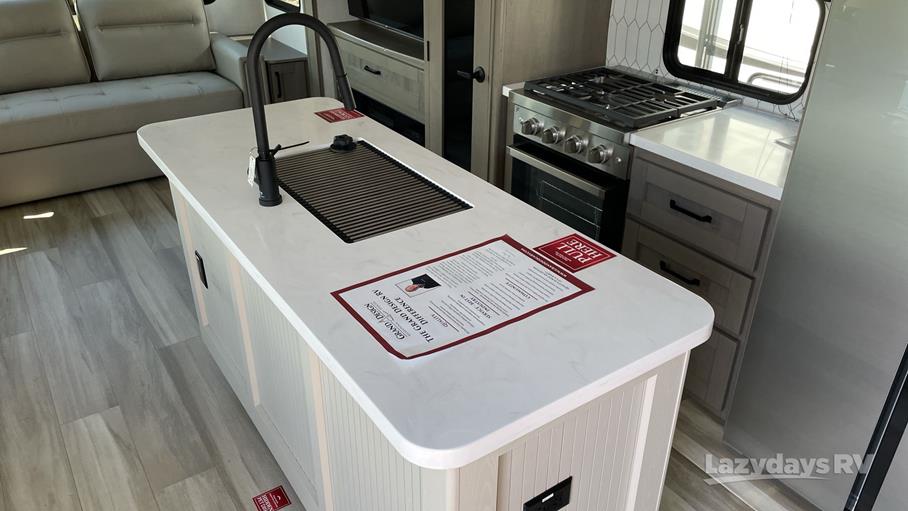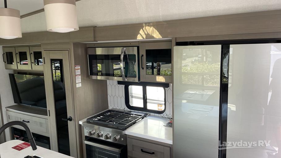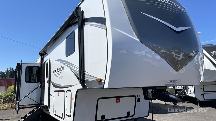 The Reflection 337RLS features three expansive slide-outs, enhancing the living space to accommodate up to five sleepers comfortably. Inside, you'll find a thoughtfully designed interior with high-quality finishes and modern amenities. The well-appointed kitchen comes equipped with top-of-the-line appliances, ensuring you can prepare meals with ease. The inviting living area boasts plush seating and a state-of-the-art entertainment system, perfect for unwinding after a day of exploration. The master bedroom offers a serene retreat, complete with ample storage and a luxurious queen-sized bed.