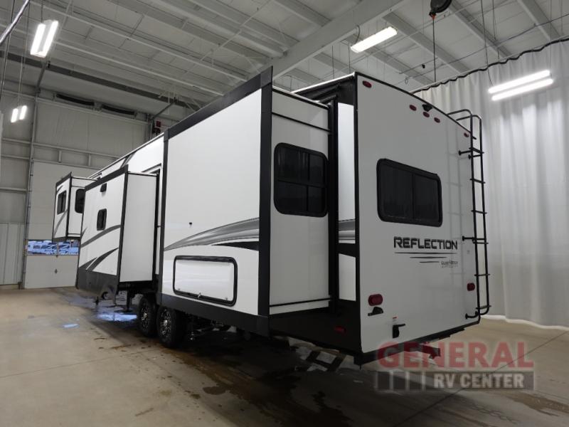 The Reflection 360FLS features five strategically designed slide-outs, maximizing the interior living space and providing a sense of openness and freedom. The thoughtfully crafted layout ensures that every inch of the RV is utilized efficiently, offering a spacious living area, a fully equipped kitchen, and comfortable sleeping quarters. The high-quality finishes and modern amenities create an inviting atmosphere, perfect for both short getaways and extended adventures.