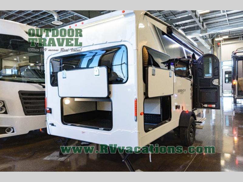 Weighing in at just over 2,014 kilograms, this travel trailer is designed for easy towing, ensuring a smooth journey to your favorite destinations. The Serenova 160LG boasts a smart layout that maximizes space and functionality. Inside, you'll find a well-appointed interior featuring a comfortable sleeping area, a fully-equipped kitchenette, and a modern bathroom. The thoughtful design ensures that every inch of space is utilized efficiently, providing ample storage for all your travel essentials.