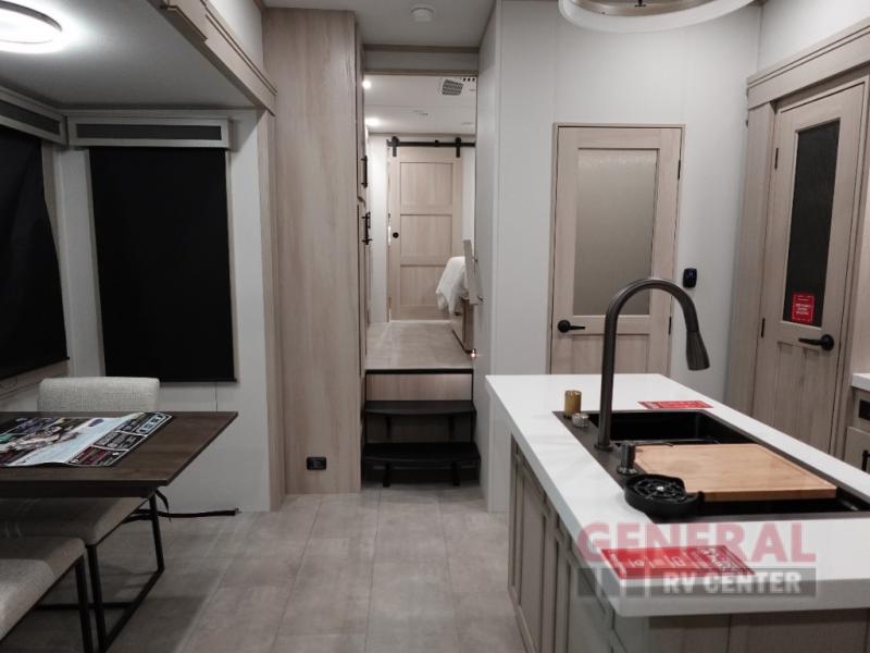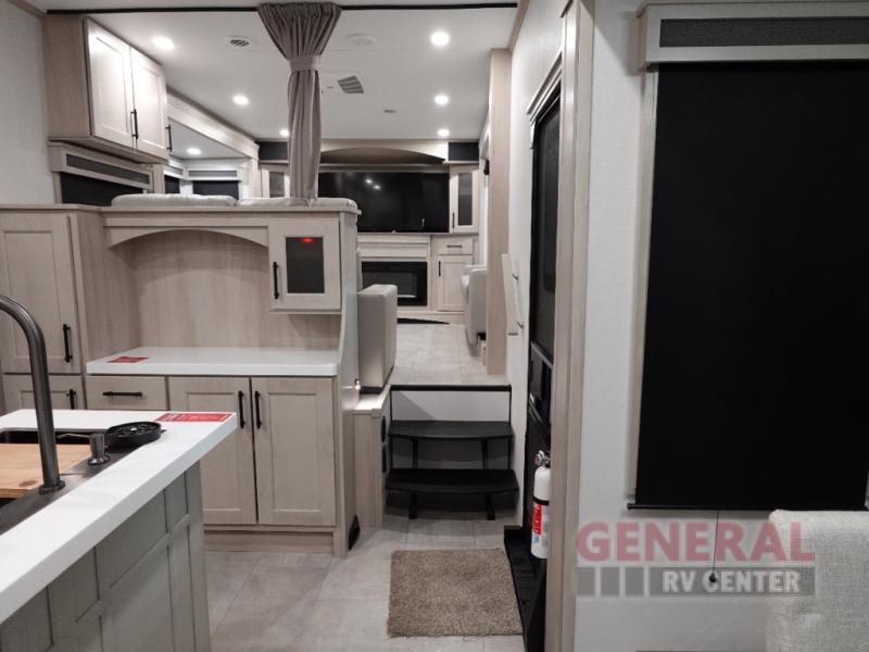 The Solitude 380FL is engineered to accommodate up to six guests, making it ideal for families or groups seeking a luxurious retreat on the road. The intelligently designed floor plan features a spacious front living area, perfect for relaxation and entertainment. The well-appointed kitchen is equipped with modern appliances and ample storage, allowing you to prepare gourmet meals with ease. The elegant dining area provides a sophisticated setting for enjoying your culinary creations.