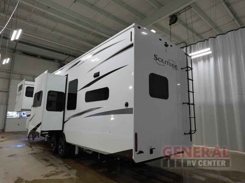 This fifth wheel is thoughtfully designed to accommodate up to six people, making it perfect for family trips or traveling with friends. The interior boasts high-quality finishes and modern amenities, ensuring a home-like experience wherever you go. The well-equipped kitchen, cozy living area, and spacious sleeping quarters provide all the comforts you need for a memorable travel experience. Whether you're cooking a meal, watching a movie, or enjoying a good night's sleep, the Solitude 417KB has you covered.