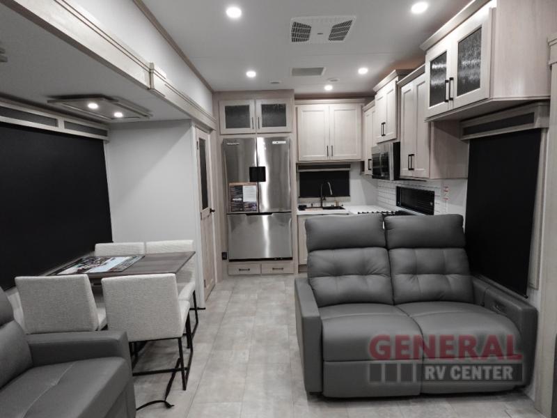 Introducing the 2025 Grand Design Solitude 417KB Fifth Wheel, a luxurious and spacious RV designed for those who seek comfort and style on the road. With its impressive four slide-outs, this RV offers an expansive living area that ensures you and your family can relax and enjoy every journey. Measuring 34 feet in length, the Solitude 417KB provides ample space without compromising on maneuverability, making it an ideal choice for both short getaways and extended adventures.