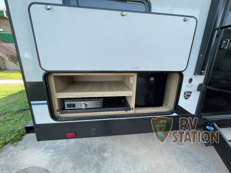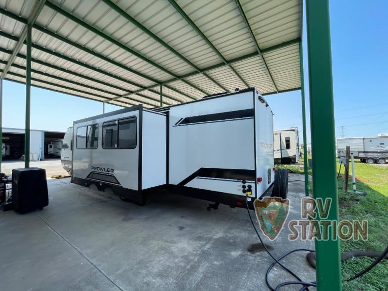 Measuring 30 feet in length, the Prowler 3211BH is expertly crafted to maximize living space without compromising on mobility. The single slide-out expands your living area, providing ample room for relaxation and entertainment. Inside, you'll find a well-appointed interior featuring a fully equipped kitchen, a cozy dining area, and a spacious living room. The private bunkhouse is a highlight, offering a dedicated space for the kids or guests, ensuring everyone has their own corner of comfort.