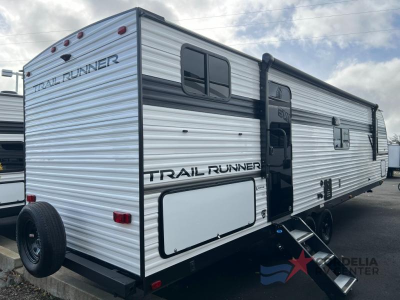 The Trail Runner 31DB features one convenient slide-out, expanding your living area to create a spacious and inviting environment. Inside, you'll find well-appointed sleeping arrangements, including a master bedroom and additional sleeping spaces that cater to both adults and children. The interior is thoughtfully designed with quality materials and finishes, offering a cozy and stylish atmosphere that feels like home.