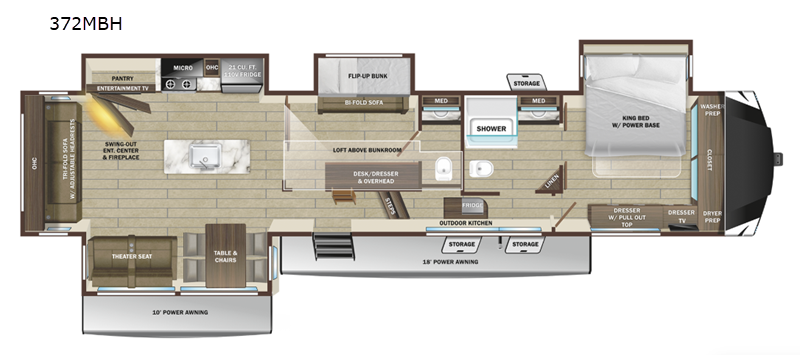 Introducing the 2025 Highland Ridge RV Open Range 3X 372MBH Fifth Wheel, a perfect blend of luxury and functionality for your next adventure. This spacious RV features four slide-outs, offering ample living space for the whole family. With a length of 36 feet, it provides a comfortable and roomy interior, making it ideal for extended trips or weekend getaways.
