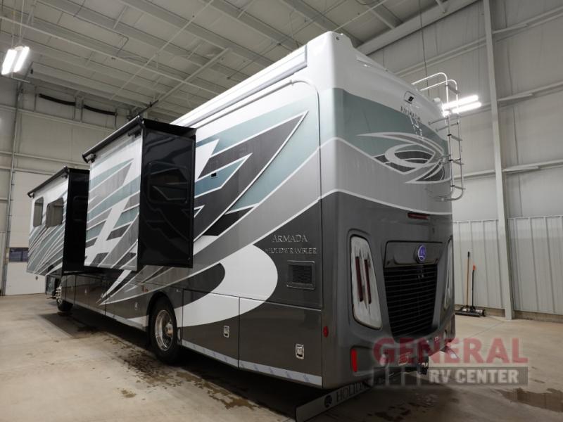 Introducing the 2025 Holiday Rambler Armada 40M Class A RV, the epitome of luxury and comfort on wheels. This stunning motorhome is designed to elevate your travel experience with its spacious and thoughtfully crafted interior. With three slide-outs, the Armada 40M offers an expansive living area that ensures you and your family can relax and enjoy every journey. Measuring 33 feet in length, this RV provides ample space without compromising on maneuverability.