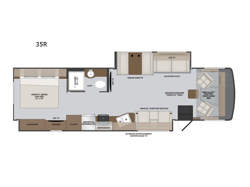 This motorhome is engineered to accommodate up to six people, making it ideal for family trips or outings with friends. The intelligently designed interior ensures that everyone has ample space to relax and enjoy the journey. With a fuel capacity of 303 liters, the Eclipse 35R is equipped for long-distance travel, allowing you to explore vast landscapes without frequent refueling stops. At 30 feet in length, this RV strikes the perfect balance between spaciousness and maneuverability, making it suitable for both seasoned RV enthusiasts and newcomers alike.
