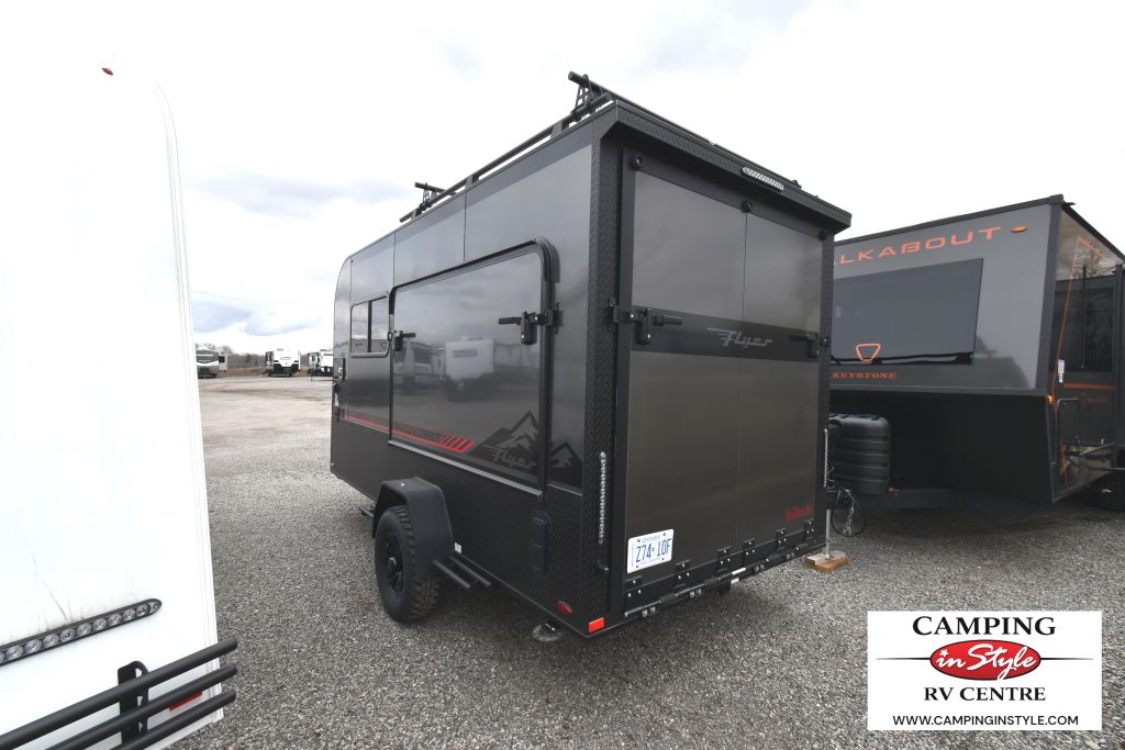 The Flyer Discover boasts a compact yet spacious design, measuring 14 feet in length. Its smart layout maximizes interior space, providing ample room for both living and storage. The ToyHauler feature allows you to bring along your favorite outdoor toys, whether it's bikes, kayaks, or ATVs, ensuring that your adventures are never limited. Inside, you'll find a well-appointed living area with modern amenities, including a cozy sleeping space, a compact kitchenette, and efficient storage solutions, all crafted to enhance your travel experience.