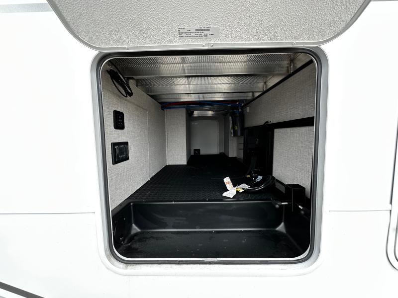 Step inside, and you'll find a spacious and cozy interior that feels just like home. The layout is smart and efficient, offering plenty of room to relax and unwind. The living area is perfect for kicking back after a day of exploring, with comfy seating and a modern entertainment system. The kitchen is fully equipped with all the essentials, including a fridge, stove, and microwave, so you can whip up your favorite meals no matter where you are. Plus, the dining area is just right for family meals or game nights.