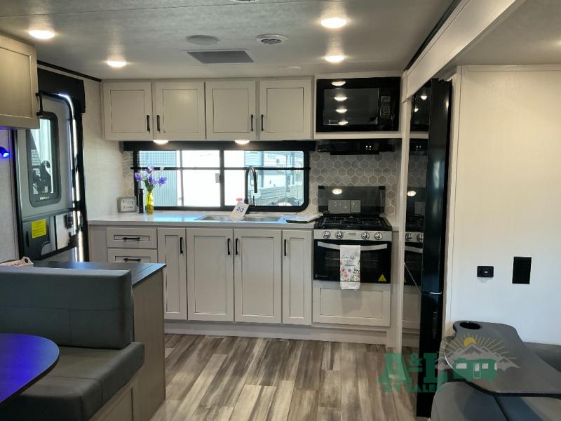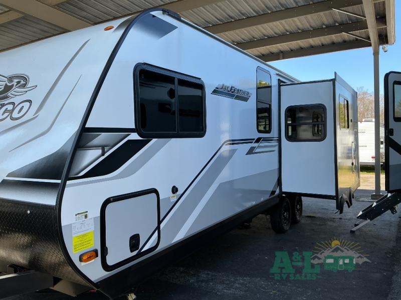 Step inside, and you'll be greeted by a warm and inviting atmosphere, complete with modern amenities and stylish finishes. The slide-out feature expands your living space, providing extra room to relax and unwind after a day of adventure. Whether you're cooking up a meal in the fully-equipped kitchen or enjoying a movie night in the cozy living area, the Jay Feather 23RK ensures every moment on the road is filled with comfort and joy. Embark on your next adventure with confidence and style in this exceptional travel trailer!