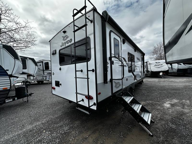 Discover the perfect blend of comfort and adventure with the 2025 Jayco Jay Feather 23RK Travel Trailer. This modern RV is designed for those who crave the freedom of the open road without sacrificing the comforts of home. Measuring approximately 24 feet in length, the Jay Feather 23RK offers a spacious and well-thought-out interior that is perfect for couples or small families looking to explore the great outdoors.