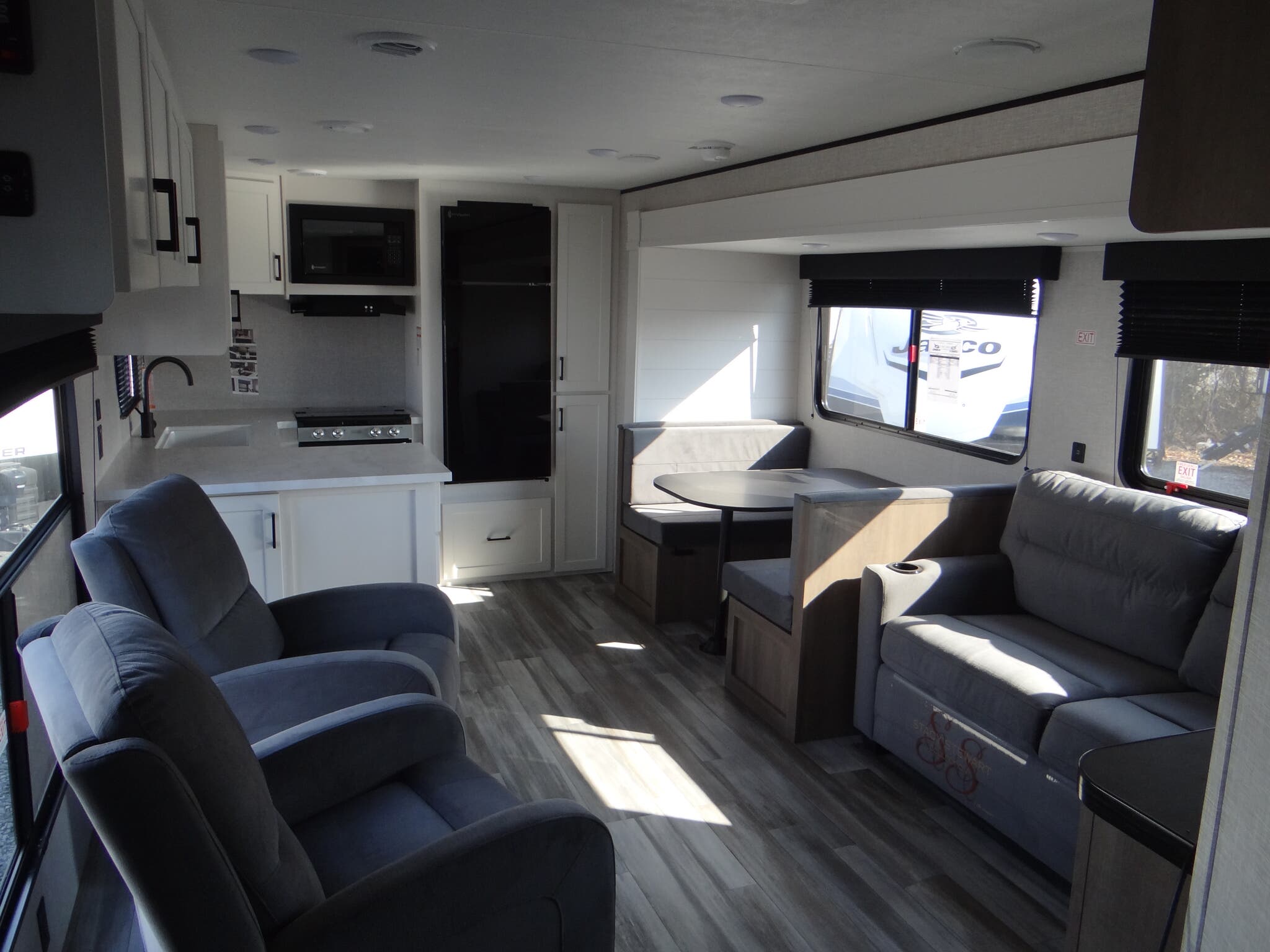 Step inside, and you'll be greeted by a cozy and stylish interior. The Jay Flight 290RKS features a well-equipped kitchen with all the essentials, including a fridge, stove, and microwave, making meal prep a breeze. The living area is perfect for relaxing after a day of exploring, with comfortable seating and a flat-screen TV for entertainment. The bedroom offers a plush queen-sized bed, ensuring a restful night's sleep wherever you park. Plus, there’s plenty of storage throughout, so you can bring along all your gear and gadgets.