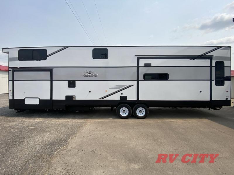 This travel trailer is not just about space; it also offers a range of amenities to enhance your travel experience. The interior is thoughtfully designed with high-quality finishes and modern conveniences, including a fully equipped kitchen, a spacious living area, and a well-appointed bathroom. Whether you're embarking on a weekend getaway or an extended road trip, the 2025 Jayco Jay Flight Bungalow 40DLFT promises to deliver comfort, style, and practicality, making every journey a memorable one.