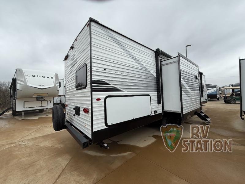 Measuring approximately 31 feet in length, the Jay Flight SLX 333BTS is thoughtfully designed to maximize every inch of space. It comfortably sleeps up to eight people, making it ideal for family vacations or group getaways. The intelligently designed floor plan includes a spacious living area, a fully equipped kitchen, and a cozy sleeping arrangement, ensuring that you have all the comforts of home while on the road.