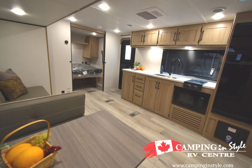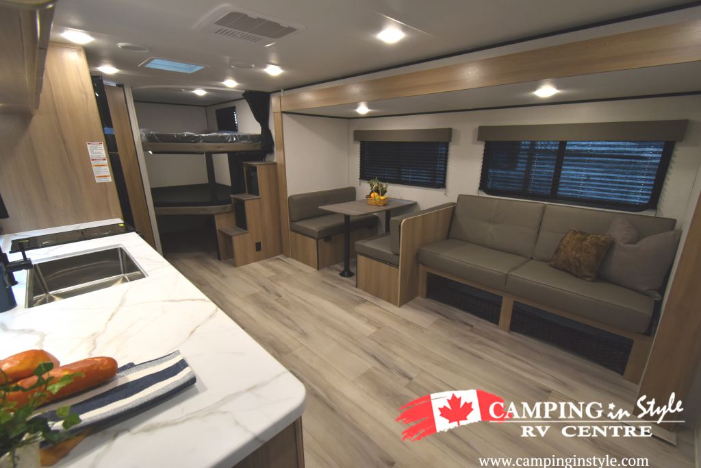 Measuring approximately 25 feet in length, the Coleman Light 26BX is compact enough for easy towing yet spacious enough to provide a comfortable living area. The single slide-out expands the interior space, creating a roomy environment for dining, relaxing, and entertaining. With a weight of just 2,277 kilograms, this travel trailer is lightweight and easy to maneuver, making it an ideal choice for both seasoned RV enthusiasts and newcomers alike.