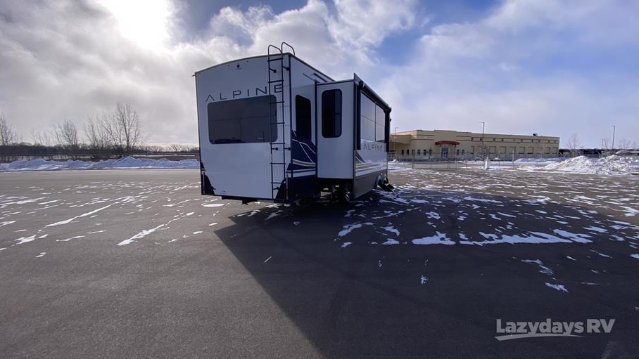 One of the standout features of this Alpine is its five slide-outs, which create an incredibly roomy interior. Whether you're lounging in the living area or whipping up a meal in the kitchen, you'll appreciate the extra space. The RV comfortably sleeps four, making it perfect for small families or couples who love to travel with friends. The interior is designed with comfort in mind, featuring plush seating, a cozy dining area, and a well-equipped kitchen that makes cooking on the road a breeze.