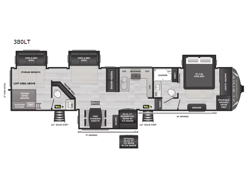 Weighing in at approximately 6,524 kilograms, this fifth wheel is engineered for stability and ease of towing, making it a reliable companion for any adventure. The Keystone RV Alpine Avalanche Edition 380LT is not just a vehicle; it's a gateway to unforgettable experiences. Don't miss the opportunity to own this exceptional RV, where every detail is crafted to enhance your travel lifestyle. Embark on your next journey with confidence and style in the 2025 Keystone RV Alpine Avalanche Edition 380LT.