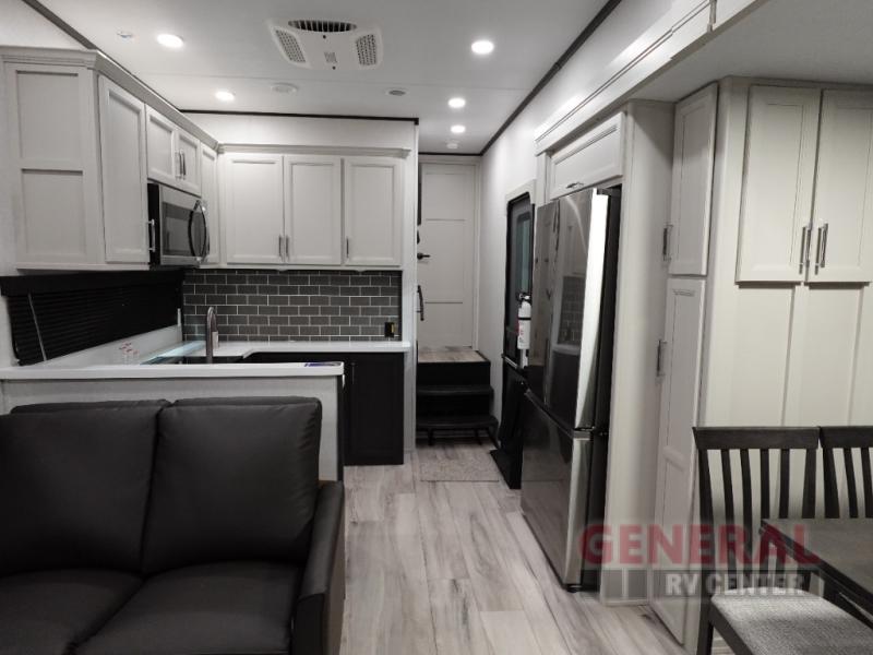 Introducing the 2025 Keystone RV Alpine Avalanche Edition 380LT Fifth Wheel, a masterpiece of luxury and functionality designed for the ultimate travel experience. This stunning RV boasts an impressive length of 35 feet, offering ample space for family and friends to explore the open road in comfort and style. With four expansive slide-outs, the interior transforms into a spacious haven, ensuring that everyone has room to relax and enjoy the journey.