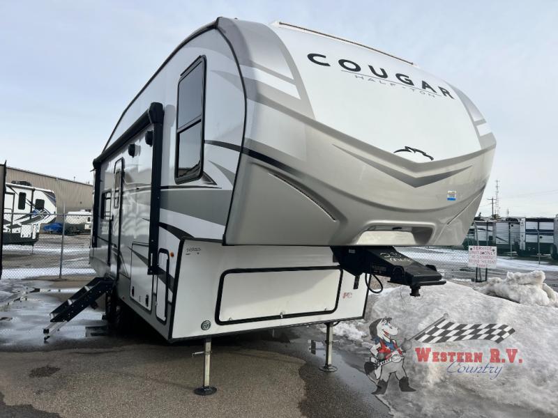 Measuring approximately 23 feet in length, this fifth wheel is compact enough for easy maneuverability yet spacious enough to ensure a comfortable stay. Weighing in at 3,531 kilograms, it is designed for easy towing, making it an ideal choice for those who love to explore without the hassle of a cumbersome setup. The Cougar Half-Ton series is renowned for its durability and quality construction, ensuring that your investment will withstand the test of time and the rigors of the road.