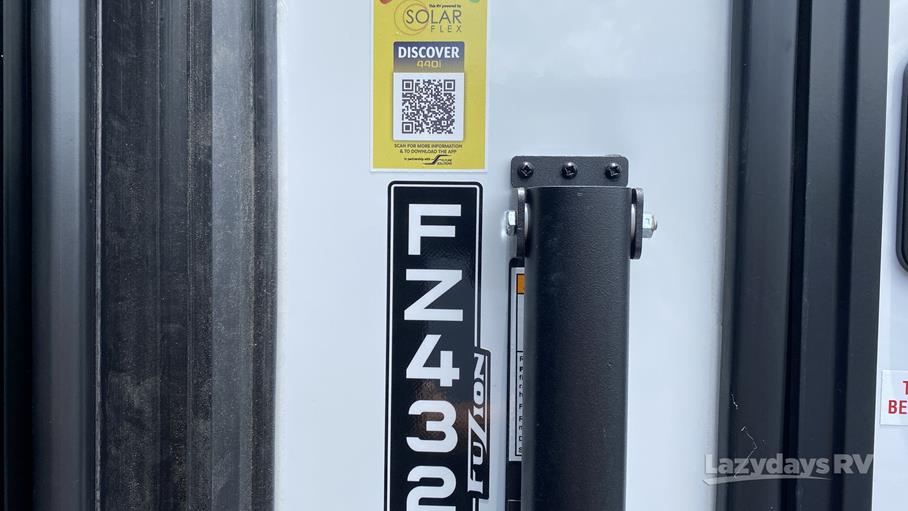 But that's not all! The Fuzion 432 is packed with features to enhance your camping experience. Enjoy the great outdoors with the exterior entertainment system and awning, perfect for those evenings under the stars. With ample storage space, you can bring along all your gear and essentials without a hitch. Whether you're hitting the mountains or the beach, this RV is ready to roll. Don't miss out on the chance to own this incredible home on wheels. Your next adventure awaits with the Keystone RV Fuzion 432!