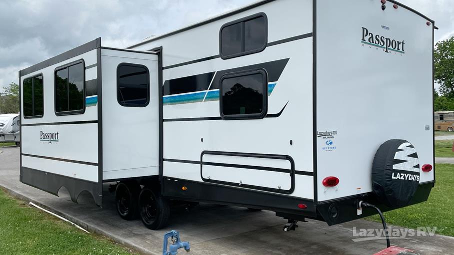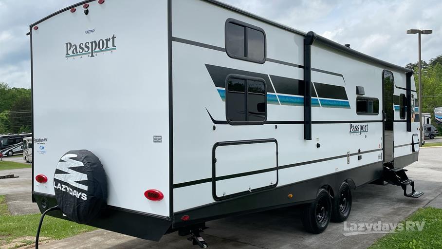 The Passport Classic 284QB features a single slide-out, which expands the living area to provide extra room for relaxation and entertainment. Inside, you'll find a well-appointed interior with modern amenities, including a fully equipped kitchen, a cozy dining area, and a spacious bathroom. The sleeping arrangements are versatile, with a master bedroom, bunk beds, and convertible seating areas, ensuring everyone has a comfortable place to rest after a day of adventure.