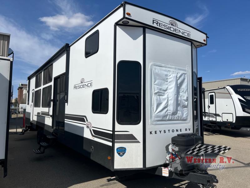 Discover the ultimate in comfort and luxury with the 2025 Keystone RV Residence 401HBDL Park Model, your perfect home away from home. This stunning RV is designed for those who crave adventure without sacrificing the comforts of home. With a spacious layout featuring two slide-outs, this model offers an expansive living area that ensures you and your family have plenty of room to relax and enjoy your travels. Measuring an impressive 40 feet in length, this RV is the ideal choice for those who want to explore the great outdoors in style.